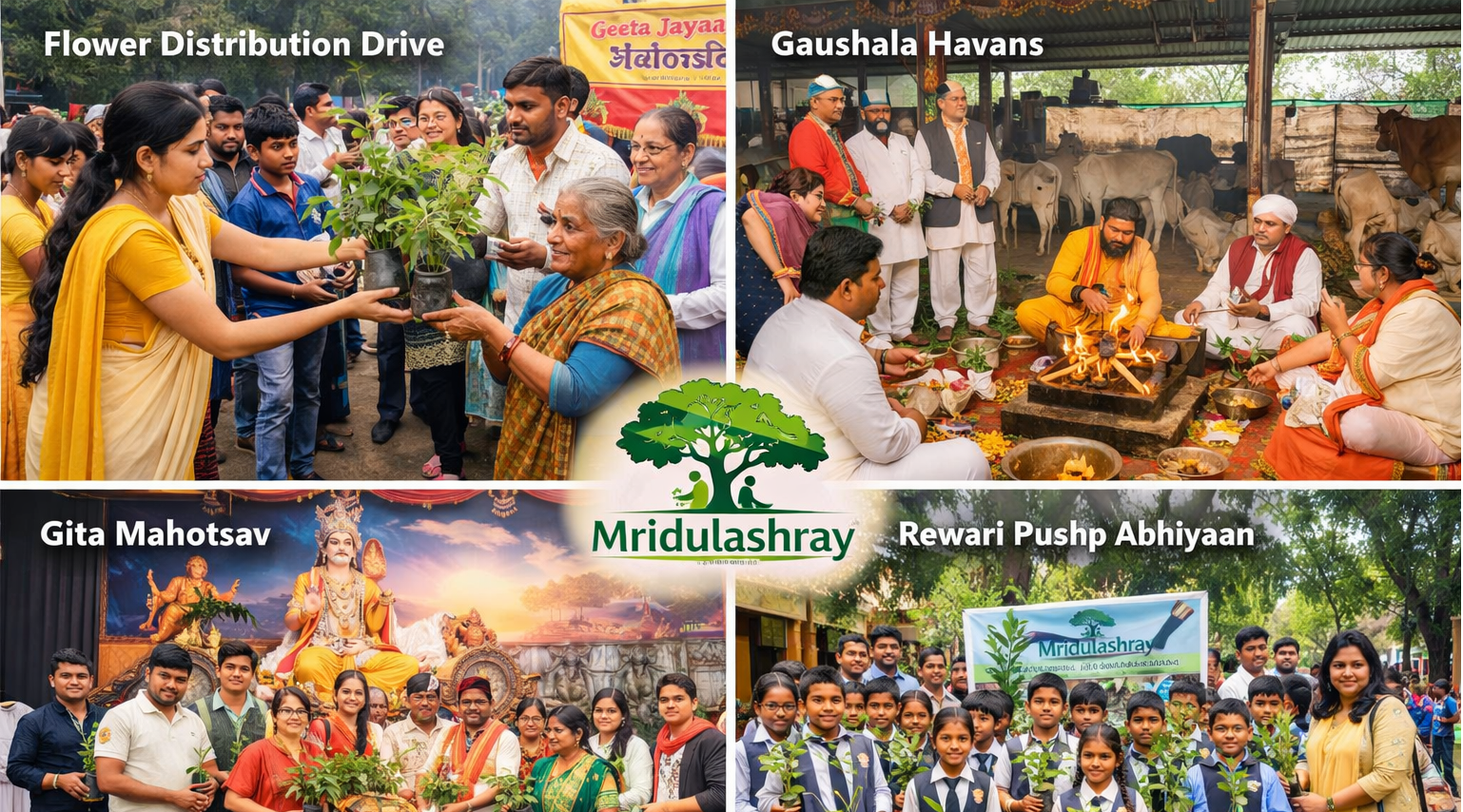 Mridulashray brings together seva, sustainability, and culture. Every drive doubles as a classroom—children learn stewardship, elders rediscover dignity, and volunteers practise empathy in action.